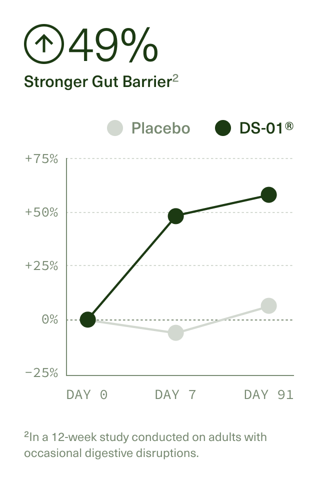 DS-01® contains probiotic strains that have been clinically and scientifically studied to provide benefits around gastrointestinal function, skin health, heart health, gut immune function, gut barrier integrity, and micronutrient synthesis.